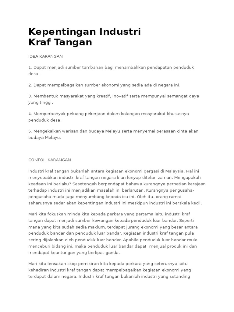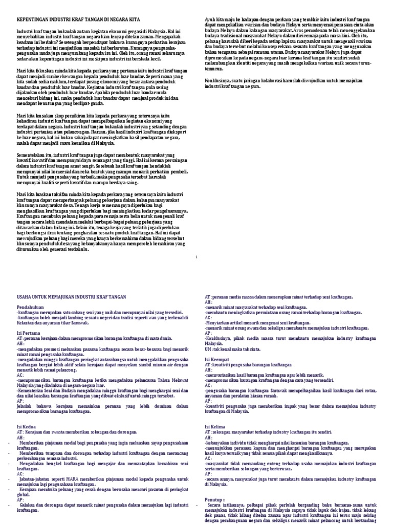 Semoga perkongsian bahan-bahan rujukan panduan bahan pembelajaran dan pengajaran contoh-contoh karangan sumber rujukan STPM Sijil Tinggi Persekolahan Malaysia tingkatan 6 dalam post di blog Bumi Gemilang berguna dan dapat. 2020 Dis 3 - Explore NURUL ARIFAH LIYANA BINTI MOHDs board kraf tangan on Pinterest. Usaha perlu dijalankan untuk menjadikan industri kraftangan ini sebagai satu industri berskala besar yang mampu memberikan sumbangan kepada ekonomi negara.