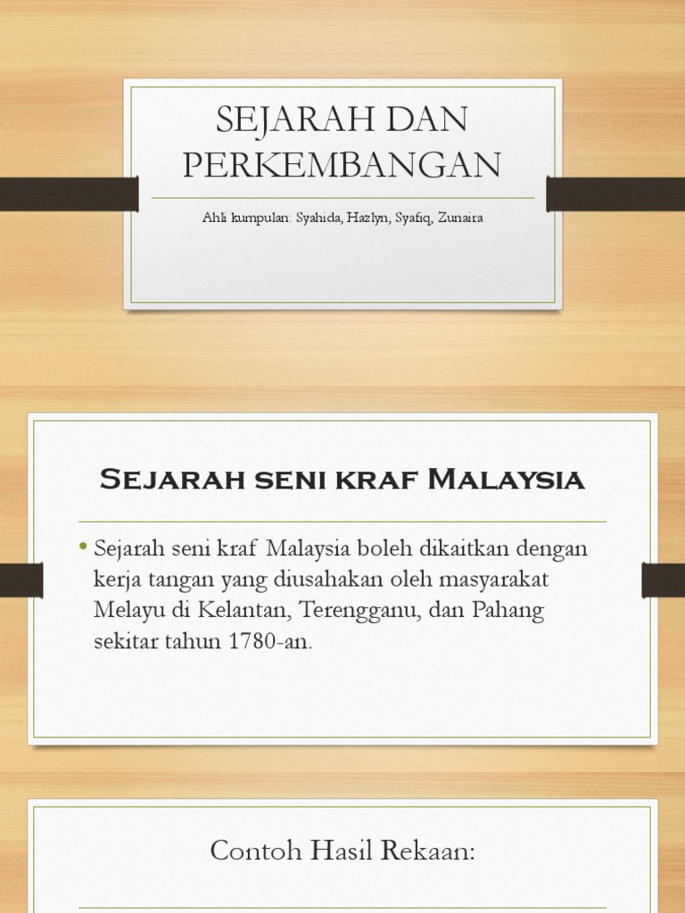 Usahawan kraf kayu. SEJARAH DAN PERKEMBANGAN SENI KRAF DI MALAYSIA by khairiah_esa. Seni kraf merupakan satu kerja hasil kerja tangan yang sangat halus dan indahIa terzahir daripada bentukgaya sifat garisan gerak dan warnanya yang menarikKebiasaannya barang-barang kraf digunakan untuk kegunaan harian dan upacara adat resam atau upacara keagamaan pada suatu ketika dahulu sehinggalah sekarangWarisan seni kraf yang masih lagi.