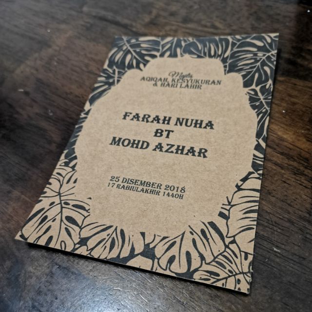 Selain digunakan sebagai kertas bungkus kado kertas jenis ini juga. Maaf saya tidak menyediakan perkhidmatan print kad kertas. Selalunya bila menggunakan kertas kraft sebagai kad kahwin bakal pengantin cenderung untuk DIY sendiri kad kahwin mereka sebab hasilnya akan lebih cantik berbanding anda hantar print saja di kedai.