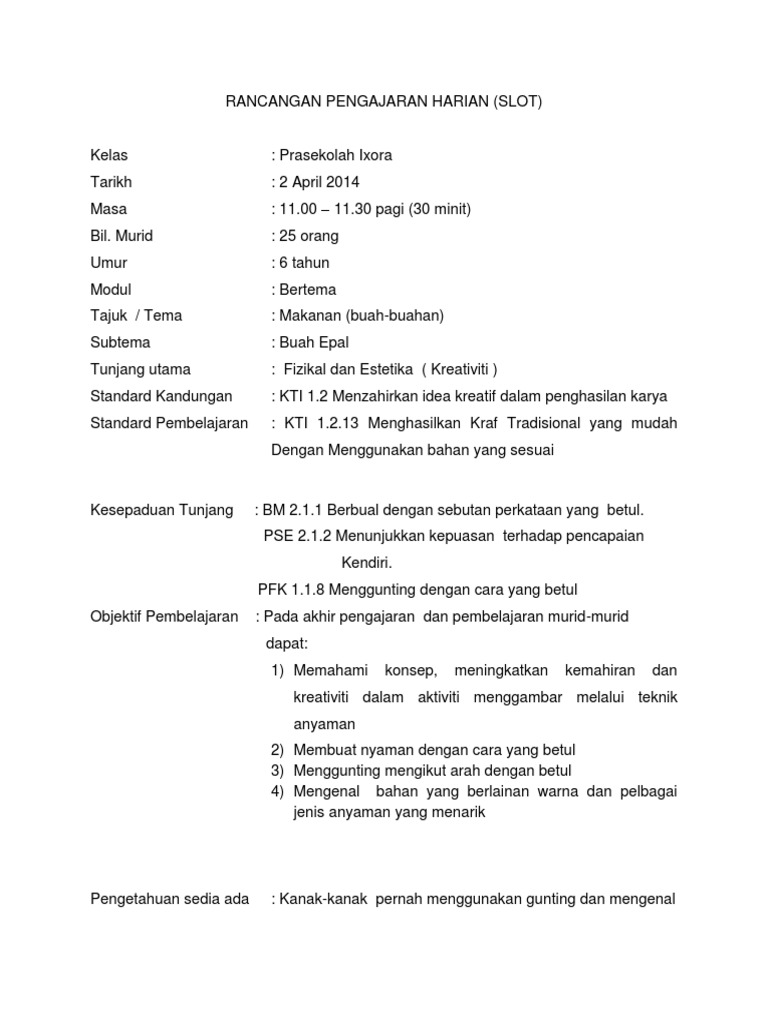 RANCANGAN PELAJARAN TAHUNAN PRASEKOLAH 2 PENGENALAN Buku Rancangan Tahunan Prasekolah RPT ini disediakan berasaskan kepada Kurikulum Standard Prasekolah Kebangsaan KSPK. Rph kssr bidang 4 mengenal kraf tradisional. Seni muzik kraf tradisional Posted by Mahasnani Mat Ariff at 1215 AM.